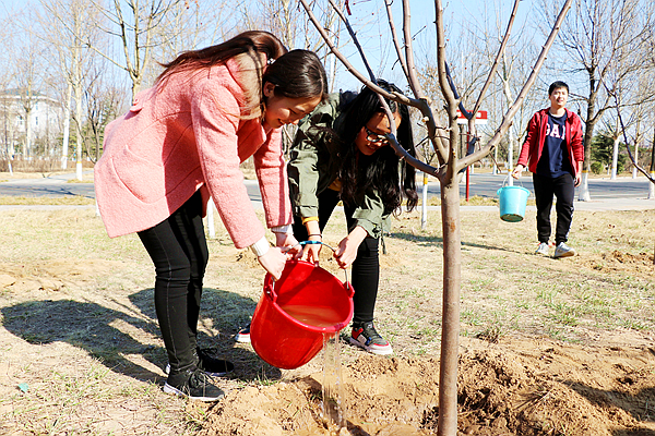 学院师生在浮烟山校区桃李路西南角进行植树活动,大家干劲十足,挥镐刨土、扶苗浇水,经过一番劳作,原本杂草丛生的荒地瞬间变成了一片整齐的树苗林。