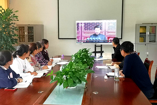 10月9日下午,亚洲成人 教工党支部在科技楼A座三楼会议室举行“不忘初心、牢记使命”爱国主义教育主题党日活动,教工党支部全体党员共同收听收看庆祝建国70周年大会盛况,深入学习领会习近平总书记在庆祝中华人民共和国成立70周年大会上发表的重要讲话精神。