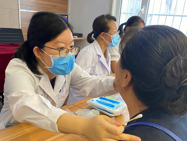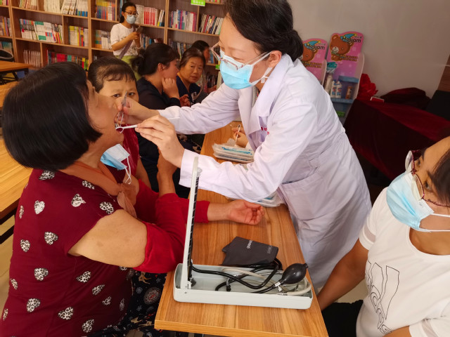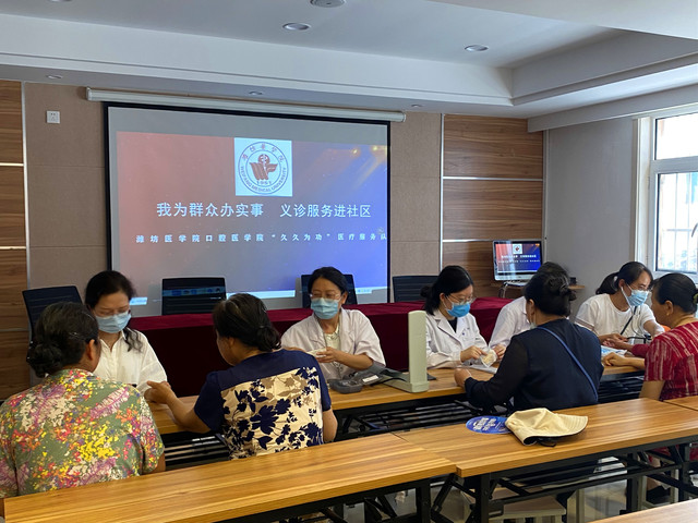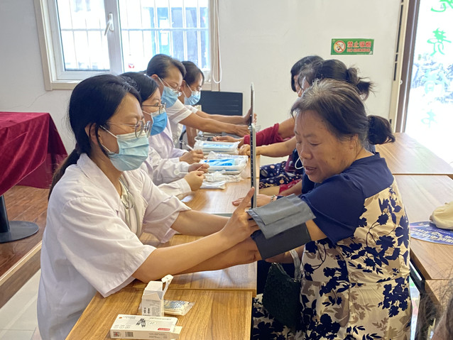 十笏园社区党委书记张娟介绍了社区党建概况,表达了通过共建“双报到”工作提升社区党建工作的想法。身着白衣的亚洲成人 党员志愿者们组成的“久久为功”医疗服务队发挥专业特长,为社区居民量血压、测血糖,进行口腔检查,普及医学常识和口腔保健知识,并针对居民们提出的健康问题一一认真答复,提出改善建议。