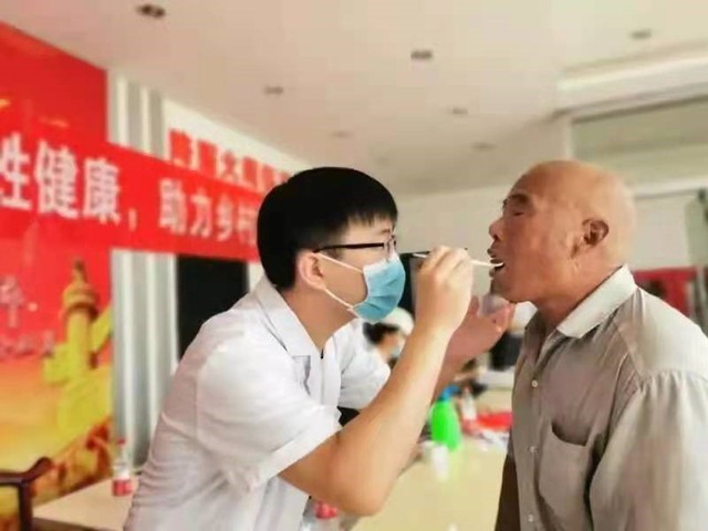 图为潍坊医学院附属医院医生进行口腔检查。