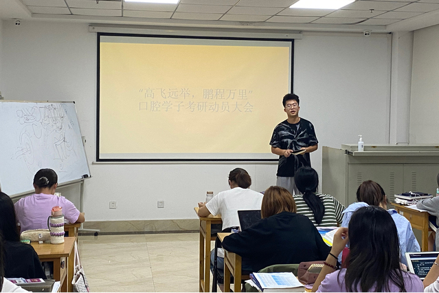活动中,2016级口腔专业毕业生作为在读研究生进行了精彩的考研历程分享,交流每一段学习和磨练的经历,感悟每一次尝试,将之作为通往成功道路的基石。同学们集体观看了励志视频,坚定了勤学的信念及信心。学院党总支书记张立、学生党支部书记栾成允等老师们叮嘱大家对未来的发展要有更为深刻的认识与规划,要有面临就业与升学的抉择,要有久久为功、努力不止的勤学精神。与会同学们结合自身实际,分享了自己的学习经验和整体学习规划。同学们起立宣誓,共同面对未来的挑战。