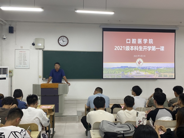 “开学第一课”主要从学风建设教育、礼仪教育、安全法制教育、心理健康教育、专业素养和校园规章制度等方面展开。张立以案例讲解的形式,从坚定理想信念、厚植家国情怀、拓宽国际视野、培养奋斗精神四个方面对同学们提出了要求。丁刚从学业方面入手,希望同学们能够立足专业基础,发挥个人优势,将理论学习和实践操作紧密结合,时刻谨记作为一名医学生的责任与义务。姜晓宁结合本学期学校和学院的规章制度的调整内容,对同学们提出了纪律、内务方面的要求,希望同学们能够严格遵守学校规章制度,在新学期展现出口腔学子应有的精神风貌和素质。冀洪海根据口腔医学本科生培养模式的特点,从临床实践的角度出发,给不同年级的学生提出了今后应努力的方向和不断学习的地方。最后辅导员老师分别对宿舍卫生、文明礼仪、人际交往、课堂纪律等方面进行强调,希望同学们能够从新学期、再出发,永远保持谦逊的态度,不断完善和提升自我。