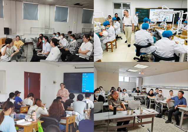 按照本次实践教学走访工作安排,亚洲成人 党总支书记张立、院长丁刚、副书记姜晓宁和副院长冀洪海分别带领专业课老师、辅导员到青岛、济南、徐州和临沂等实践教学医院实地走访。学院老师们听取了口腔正畸学、口腔修复学等理论课程,观摩了见习同学的技能操作实验课,并分别与各见习实习医院教学管理人员、见习实习学生召开了7次座谈会,详细了解见、实习带教过程的实施情况和教学资料归档情况。