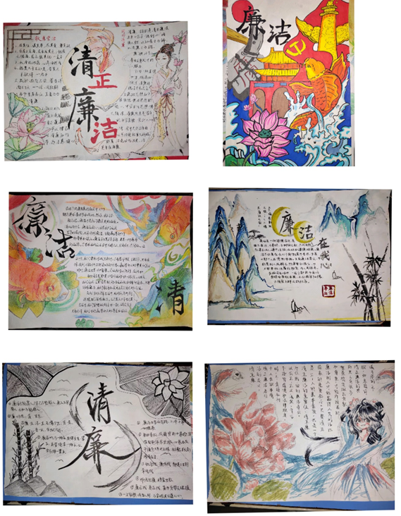 同学们开展了主题为“廉洁教育在身边”的“青廉学堂”主题班会,通过对孔繁森、王进喜、黄大年,于成龙、于谦、海瑞等古今人物的先进事迹进行学习,引导大家向优秀的廉洁模范学习,深入思考廉洁自律的重要性,积极践行廉洁行为。通过承办“清风扬正气,廉洁在我心”手抄报设计比赛,以赛促学,通过此类活动引领树立廉洁思想。通过先后开展“廉洁文化进校园”主题团课并总结了廉洁文化对当下时代的意义,并对何为廉洁、如何做到廉洁为民进行了深入讨论和学习,总结了当代对“廉洁”二字的要求。通过撰写心得体会的形式,倡导大家用清廉汇就人生底色,培养了同学们廉洁意识、廉洁习惯和廉洁作风。