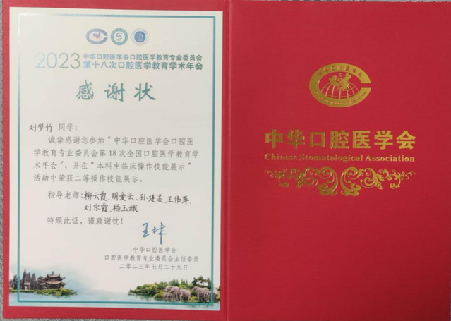 7月26日,在中华口腔医学会主办的第十八次全国口腔医学教育学术年会中,亚洲成人 2018级学生刘梦竹同学以过硬的基本功先后完成了5项临床技能操作和第二轮的5项数字化新技术操作的所有展示项目,总成绩位列全国第10位,跻身二等奖。