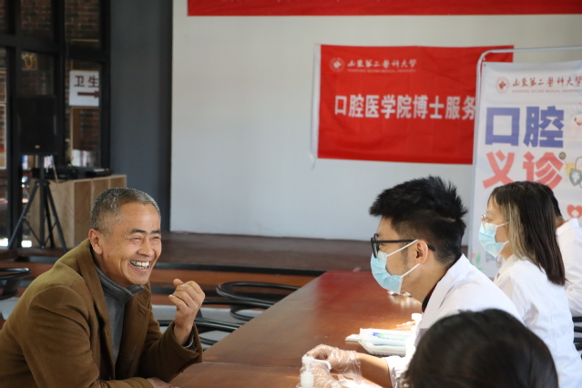 践行健康使命,博士团队护航群众口腔健康。带着革命先烈的精神感召,师生们转赴龙池镇新时代文明实践广场,搭建起“移动口腔诊疗站”。由7名口腔医学博士、10名志愿者组成的服务团队为当地居民开展免费口腔检查,针对乡村群众常见的龋齿、牙列缺失、牙周炎等问题,现场提供个性化诊疗方案。“以前觉得牙疼不是病,现在了解了!多亏这些专家上门!”57岁的韩大姨连声道谢。