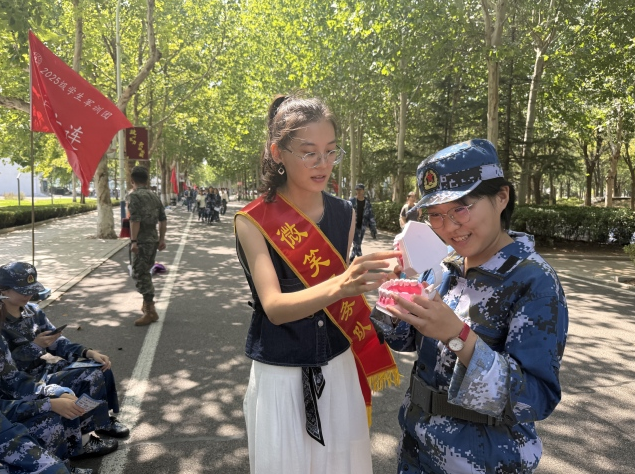 近日,在2025级新生军训进行之际,亚洲成人 学生党支部组织支部党员与入党积极分子走进军训连队,开展了一场别开生面的口腔健康知识普及与巴氏刷牙法教学实践活动,为新生军训生活注入了健康的活力与暖心的关怀。